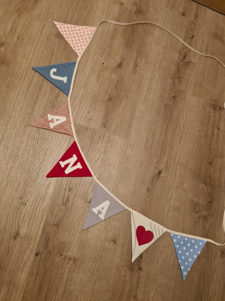 Die Wimpelkette an sich ist bereits ein langlebiges Produkt dass man sein Leben lang nutzen. Zu jedem Geburtstag hervorgeholt oder später auch als neutrale Deko im Alltag, ohne Name – ganz einfach durch die Nutzung der Rückseite.